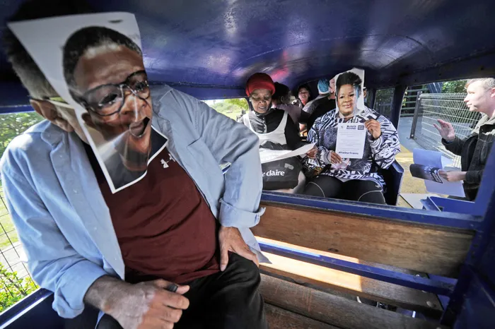 Passengers aboard the kiddies train wore face masks of six Members of Parliament whom they believe have led to the collapse of the Passenger Rail Agency of SA (Prasa) and should be held to account.