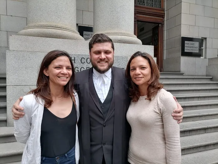 Sisters Alicia and Alexa Jooste outside Western Cape High Court with State advocate Leon Snyman. Picture: Chevon Booysen