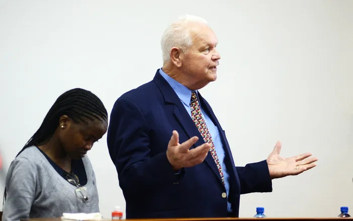 Johannes Burger, the last police officer to see Imam Abdullah Haron alive at the police station, answering questions in cross-examination by advocate Havard Varney. Photo: Phando Jikelo/African News Agency (ANA)