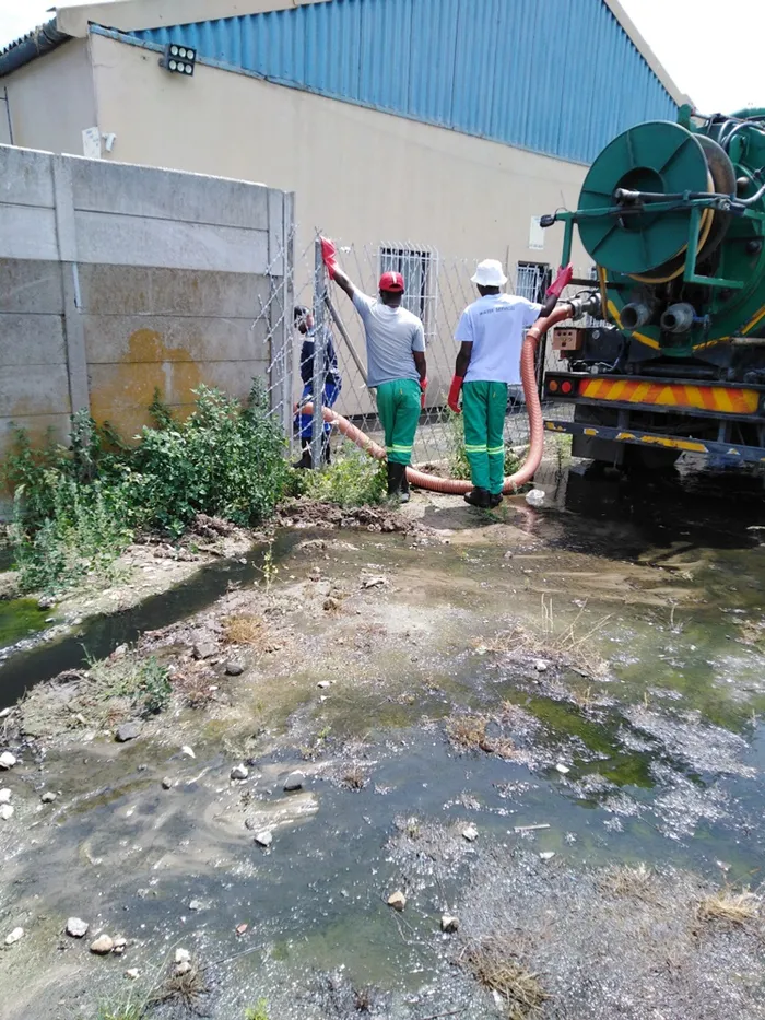 The City’s Water and Sanitation Directorate’s operational teams managed to unblock the overflowing sewage inside a nearby factory. The yard of Kuils River Indoor Sports Arena which was affected by the sewage overflow was cleaned and disinfected. | COCT