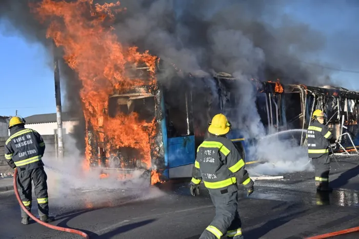 Two buses, a MyCiTi and a Golden Arrow bus, were set alight in the early morning, while another one was hijacked with passengers inside but was later recovered. Two women were injured after jumping off a bus that was being shot at in Oscar Mpetha Road in Kuyasa.