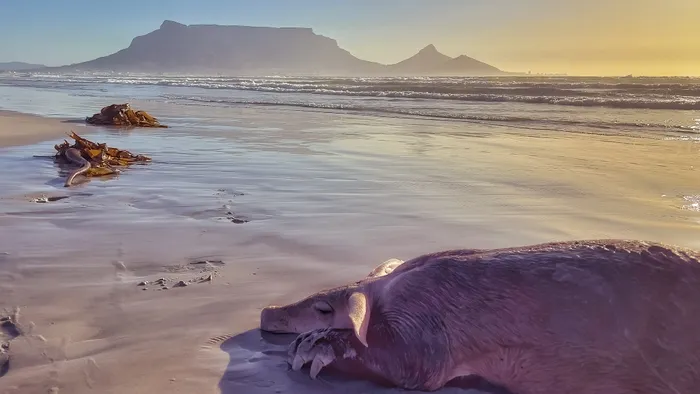 On Friday, a deceased adult female Aardvark washed up at Sunset Beach in Milnerton. | Alex Aitkenhead