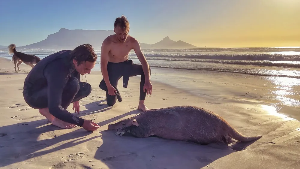 Wildlife and nature photographers Alex and Juanita Aitkenhead stumbled across the nocturnal mammal in wonderment, along with other curious beachgoers, and requested the SA Foundation for the Conservation of Coastal Birds (Sanccob) remove the animal and hand it over to wildlife services for evaluation and a post-mortem.