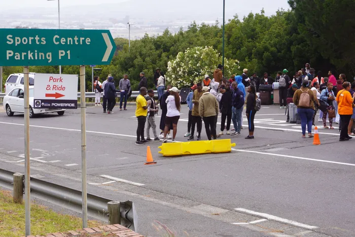 The entrance at UCT blocked at the Sports Centre by students who say they are protesting the lack of residences for new and current students. Picture: Tracey Adams/African News Agency (ANA)
