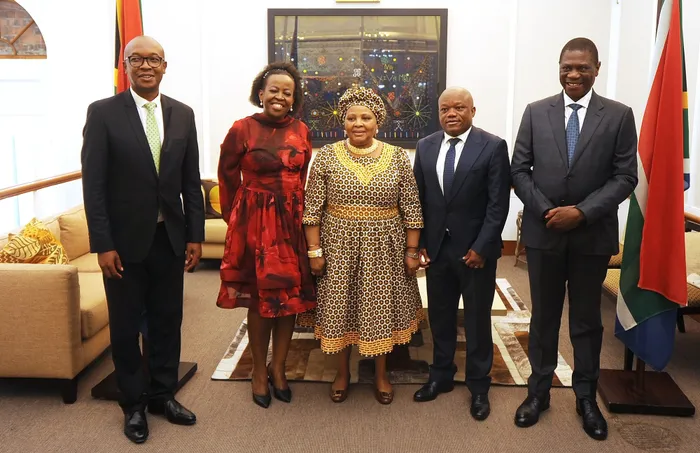 ANC deputy president Paul Mashatile, together with second deputy secretary-general Maropene Ramokgopa, former City of Joburg mayor Parks Tau and former KwaZulu-Natal premier Sihle Zikalala are sworn-in at a ceremony with National Assembly Speaker Nosiviwe Mapisa-Nqakule presiding. Picture: Phando Jikelo/African News Agency (ANA).