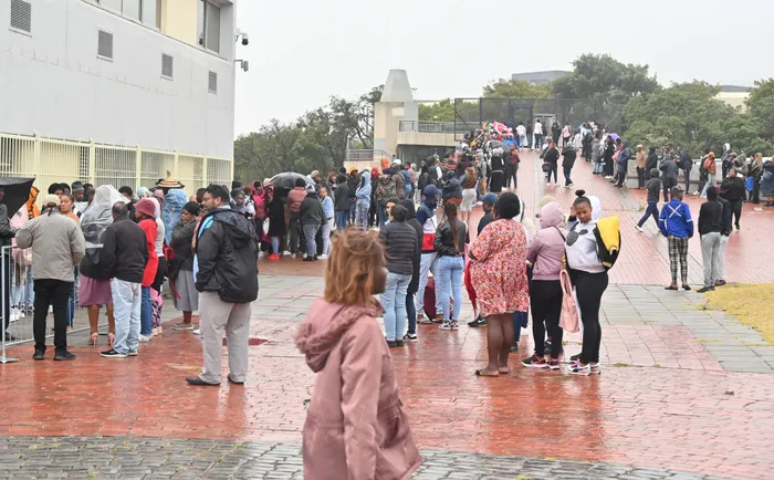 Long queues as would-be students brave the cold rain to queue at Cape Peninsula University of Technology Cape Town campus for late walk-in applications as they are desperate to get into university. Picture: Ayanda Ndamane African News Agency (ANA)