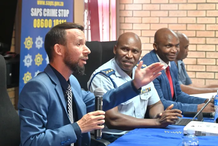 Police Oversight and Community Safety MEC Reagen Allen and the PoliceCommissioner, Lieutenant-General Thembisile Patekile unpacking the third quarter crime statistics for the province at Mfuleni Police Station. Picture: Ayanda Ndamane/African News Agency