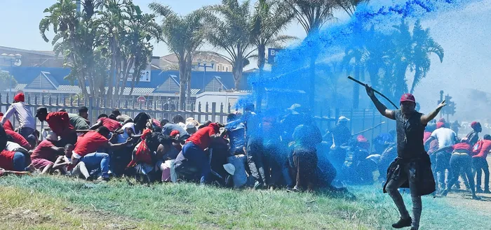 File - Police use stun grenades and tear gas against protesting EFF members at a Cape Town school, now mayor Geordin Hill-Lewis has been granted an interdict to protect the city against possible looting and violence during the party’s planned national shutdown. Picture: Phando Jikelo/African News Agency (ANA)