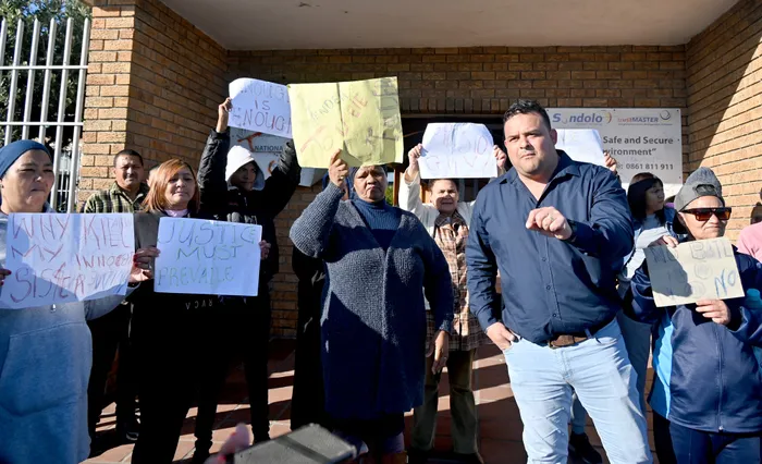 Bonteheuwel Ward Councillor Angus Mckenzie joined the community outside Bishop Lavis court on Tuesday morning where a man accused of killing his girlfriend in her sleep appeared in court. Picture: Ayanda Ndamane/African News Agency (ANA)