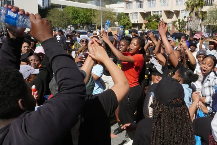 Students from Stellenbosch University, Cape Peninsula University of Technology (CPUT), University of Cape Town, and University of the Western Cape joined in the protest from CPUT’s District Six Campus to Parliament, on Wednesday.