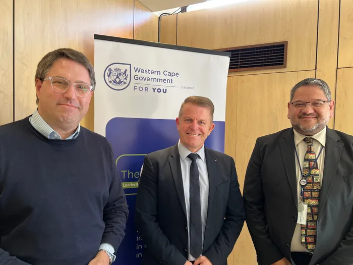Education MEC David Maynier, new chief evaluator for the Schools Evaluation Authority David Millar, and head of the WCED Brent Walters. Picture: Supplied