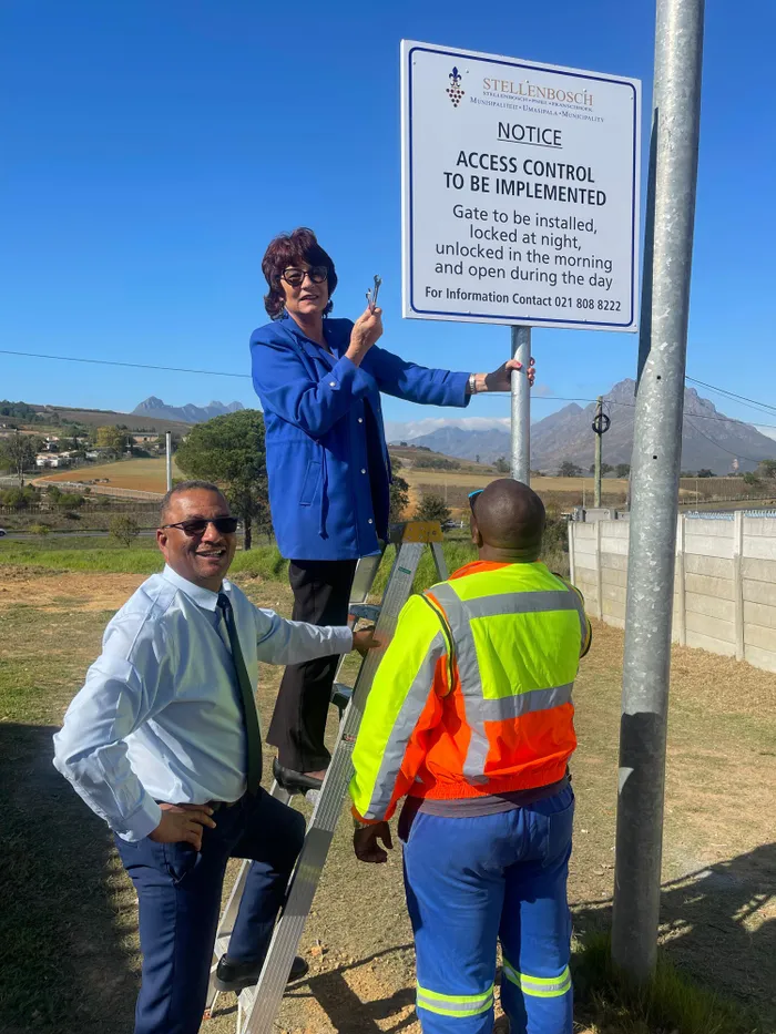 Mayor Gesie van Deventer, and her deputy Jeremy Fasser visited the sites to inspect the progress of the gate installation and landscaping.