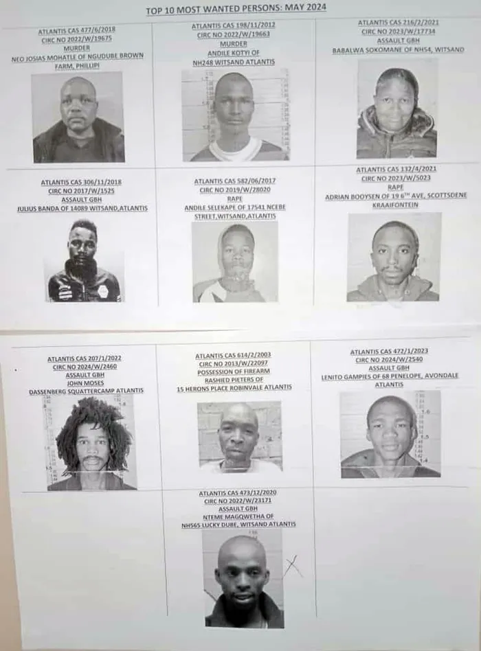 Cape Town - The ten 10 most wanted suspects in Atlantis have all been released on bail or parole. Their crimes range from assault with intent to cause grievous bodily harm, murder and rape.