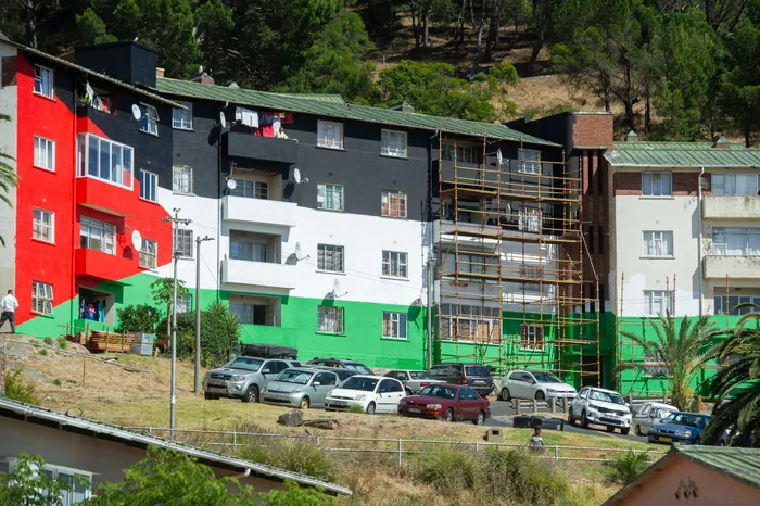 The Palestinian flag painted across an entire block of flats on Astana Street, Bo-Kaap. Photographer: Armand Hough / Independent Newspapers