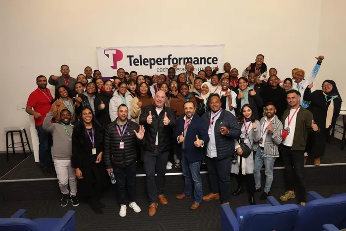 James Vos, the City’s Mayco member for Economic Growth, in a group photo with the Teleperformance team. Picture: Supplied