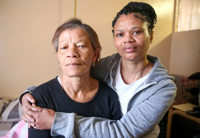 Audrey James, left, and her daughter Leandra Benjamin, following the death of their son and brother, Jacobus Benjamin. Photographer: Leon Lestrade / Independent Newspapers