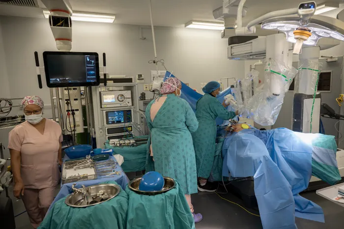 South Africa - Cape Town - 29 August 2024 - In honour of Womens Month, the Western Cape Department of Health and Wellness, Groote Schuur Hospital, the Groote Schuur Hospital Trust (GSH Trust), and strategic funding partner Medhold are proud to announce a special Womens Health-focused Robotic Surgery Week taking place from 26 August to 30 August 2024. The Robotic Surgery Week featured 10 complex procedures, including gynaecological, urological, and colorectal surgeries, all performed using the state-of-the-art Da Vinci surgical robot. Since its introduction at Groote Schuur and Tygerberg Hospitals in 2022, this technology has revolutionised surgical care, offering minimally invasive options that reduce pain, speed up recovery, and lower the risk of complications. Photographer: Armand Hough / Independent Newspaper