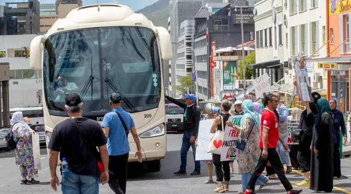 Bo-Kaap residents protest large tour buses driving through Wale Street. Pic: Leon Lestrade/Independent Newspapers