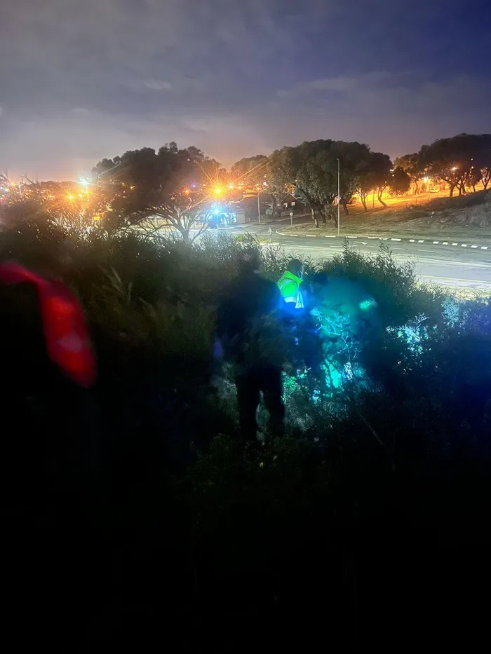 Officers comb through the bushes in Mitchell's Plain, where a gruesome discovery has sparked an investigation into a possible homicide.