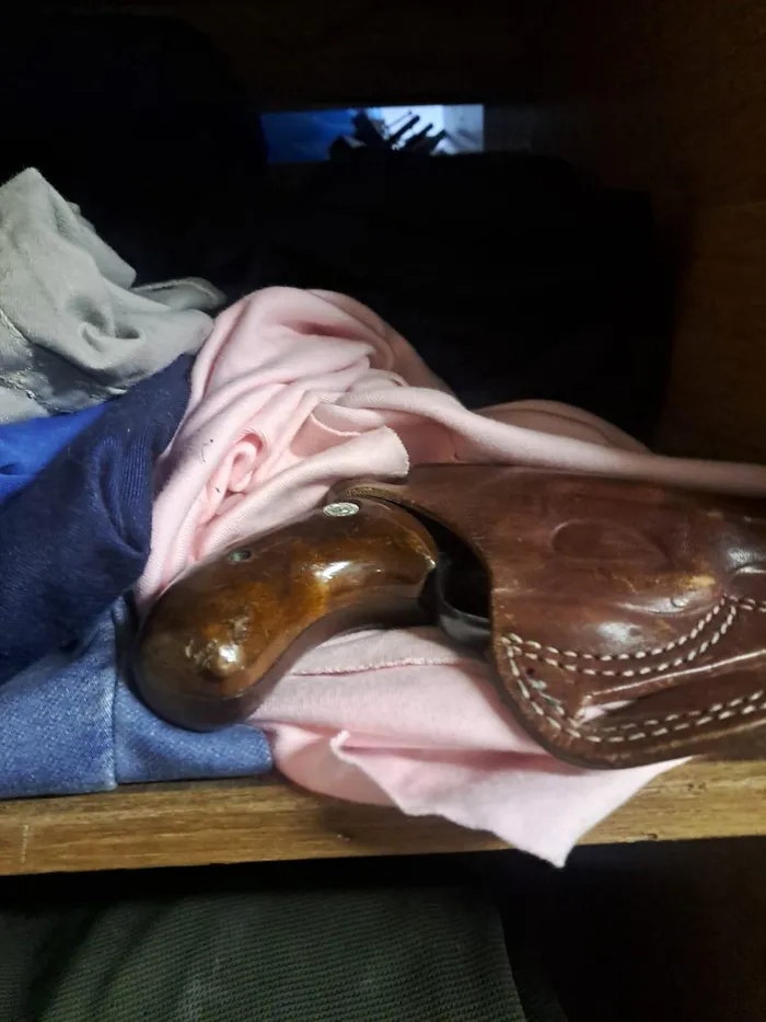 “Upon entering the home at about 1:30pm they searched the premises and in the process confiscated seven different calibre firearms and ammunition in a steel cabinet inside the house.