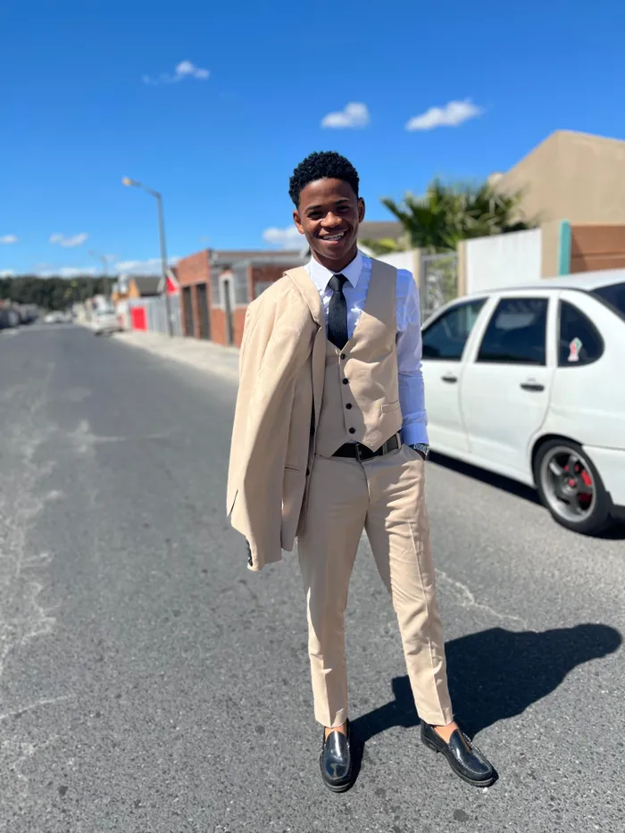 He was donned in a personalised suit which had been sponsored by Lucy’s Boutique in Parow who had heard of his overwhelming story.