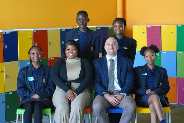 Curro Delft debating team: Left to right: Siphosethu Ntilane (Grade 9), Siligugu Mkhize (English Teacher), Ruan Beukes (Executive Head), Thandeka Sasa (Grade 8) Valiant Munyanyi (Grade 9, at the back), and Mbalenhle Maseko (Grade 9).