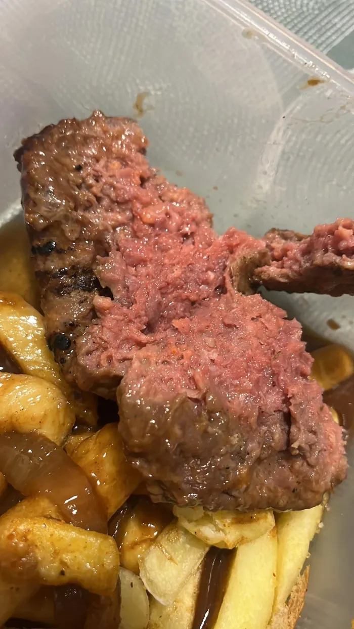 Images shared online show green-speckled bread, expired yoghurt and even raw meat served with french fries.