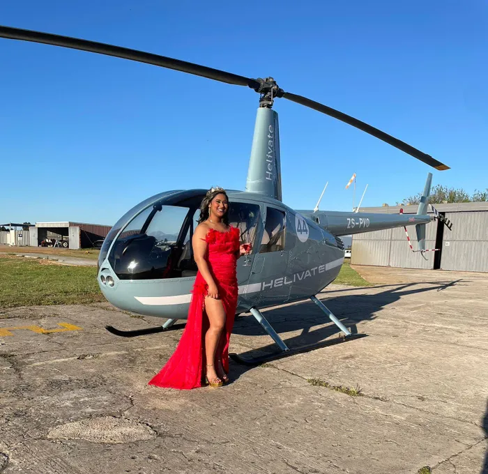 Gabby-Lee Davids, 18, also made history for being the first matriculant to arrive in a helicopter at her matric dance held at Spine Road High school on October 3.