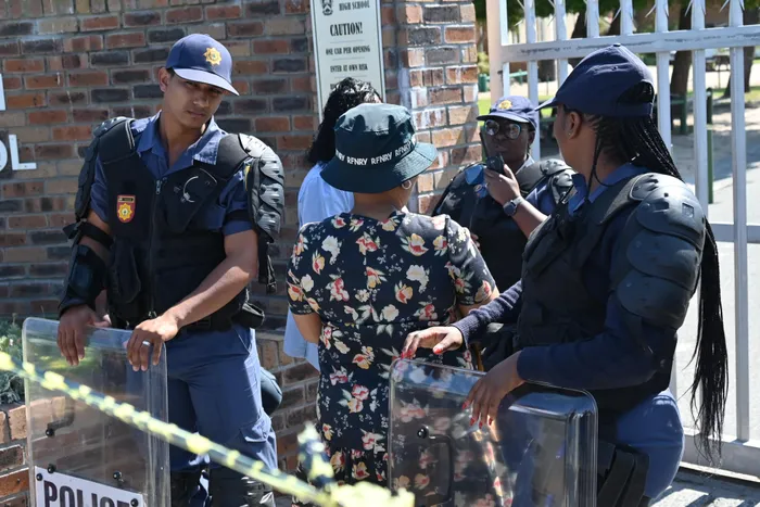 A heavy police presence outside Milnerton High School.