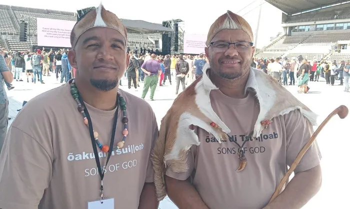 While Hope Revolution’s men stood out in the stands, two men from Sons of God Reach, were dressed in their traditional Khoisan-clothes.
