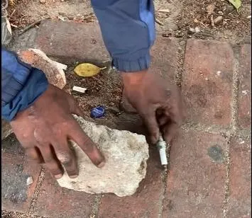 The same witness is a second video, demonstrates how criminals use a sparkplug to break car windows during smash-and-grabs. He explains that the ceramic insulator is first smashed, with the broken ceramic pieces then placed in the mouth to become warm and moist before being used to break a car’s window.