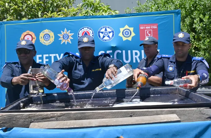 Confiscated alcohol is destroyed at the City of Cape Town’s Ndabeni Pound on Wednesday, where nearly 3 000 litres of liquor seized from public spaces were disposed of as part of ongoing festive season enforcement efforts aimed at curbing alcohol-related harm and pressure on emergency services.