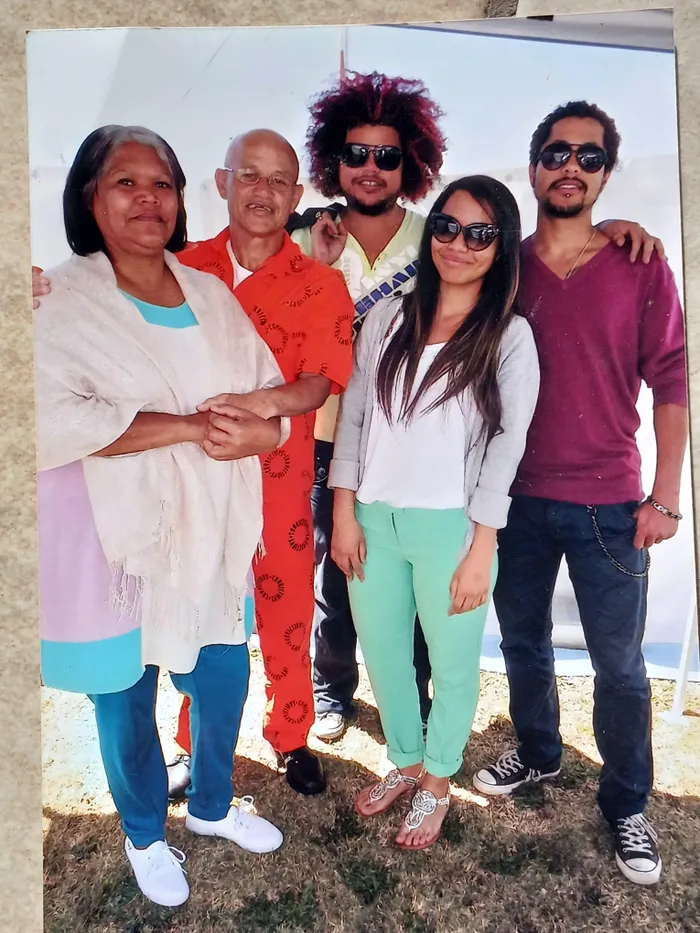 Nilko Staggie on right end and his brother Jason, sister and parents.