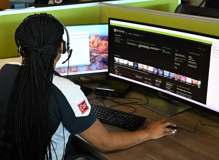 A Public Emergency Communication Centre call-taker on duty, fielding emergency calls and dispatching assistance as Cape Town’s emergency services face heightened festive-season demand.