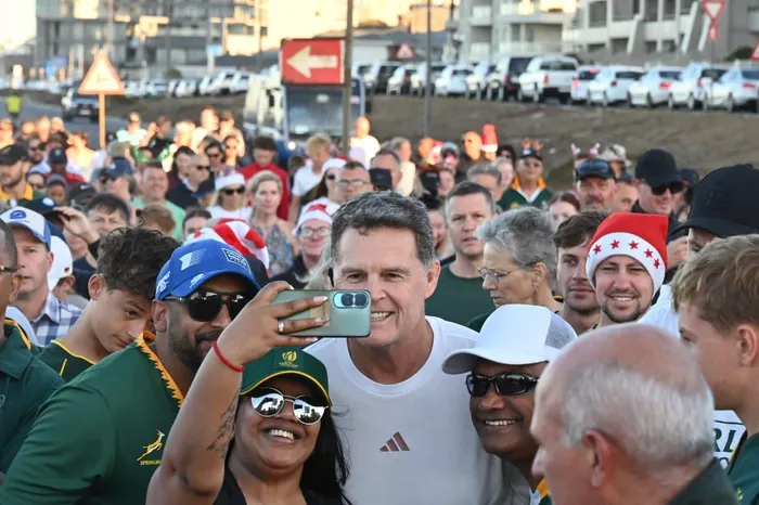 A large festive crowd joined Springbok coach Johan Rassie Erasmus on a Christmas morning walk along the Blouberg coastline on Thursday, turning an informal idea into a growing community tradition.