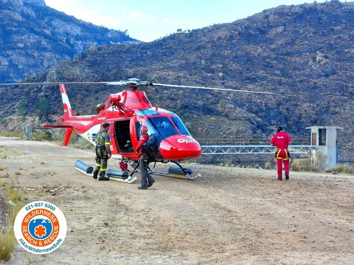 “A small specialist rescue team was deployed by the Western Cape Government Health and Wellness EMS / Air Mercy Service rescue helicopter, working closely with the Department of Water Affairs, CapeNature and the Cape Winelands District Municipality Fire Services.”