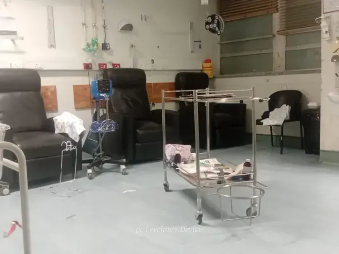 According to Abrahams, there was a severe lack of assistance, with very few nurses and doctors available to attend to patients. She also described the hospital environment as unhygienic and neglected.