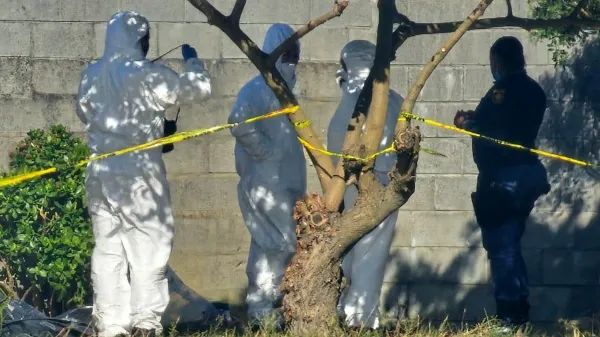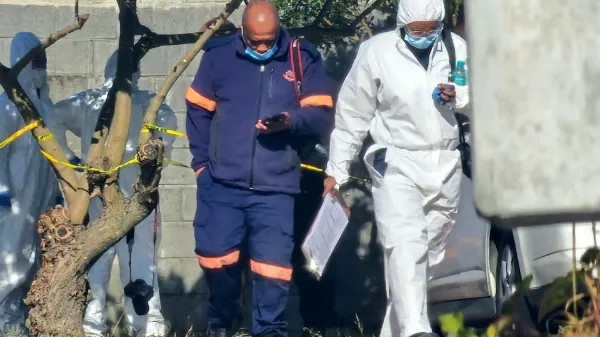 Forensic teams examine the crime scene where the remains of Crystal Silver were discovered.