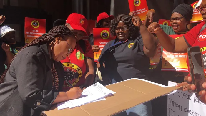 Members of the South African Domestic Service and Allied Workers Union, supported by Cosatu, marched to the Department of Employment and Labour in Cape Town to hand over a memorandum of demands, calling for urgent intervention from the government.