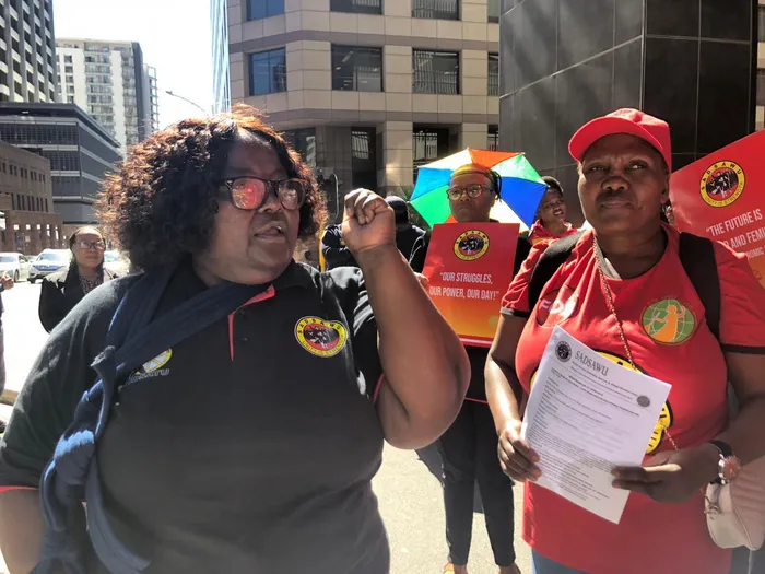"We can’t celebrate if employers, government, and society don’t recognise us as workers in South Africa. We carry families, we carry society, and we contribute to the economy," said union leader Gloria Kente.