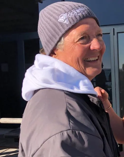Karen Kennedy after she completed her quadruple Robben Island crossing.
