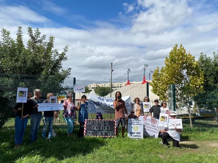 Animal rights activists demonstrating in front of the McLaren Circus in Bellville previously.