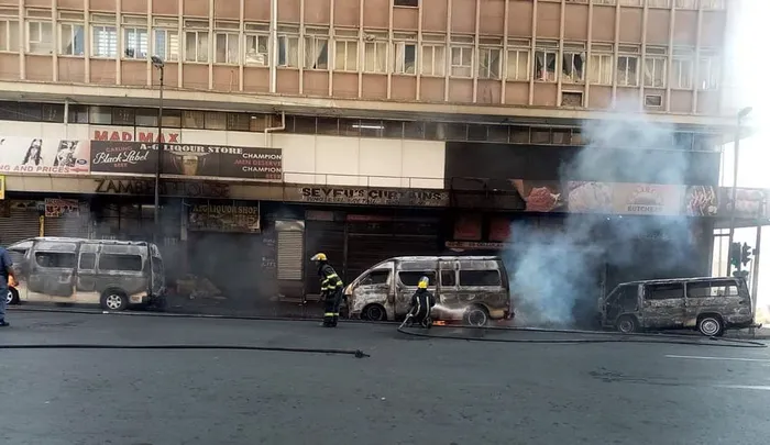 Firefighters dousing taxis on fire Several minibus taxis were set alight over the weekend in parts of Johannesburg CBD in ongoing turf war between the Witwatersrand African Taxi Owners Association (WATA) and the Nancefield Dube West Taxi Association (Nanduwe). File Photo: Joburg Municipality