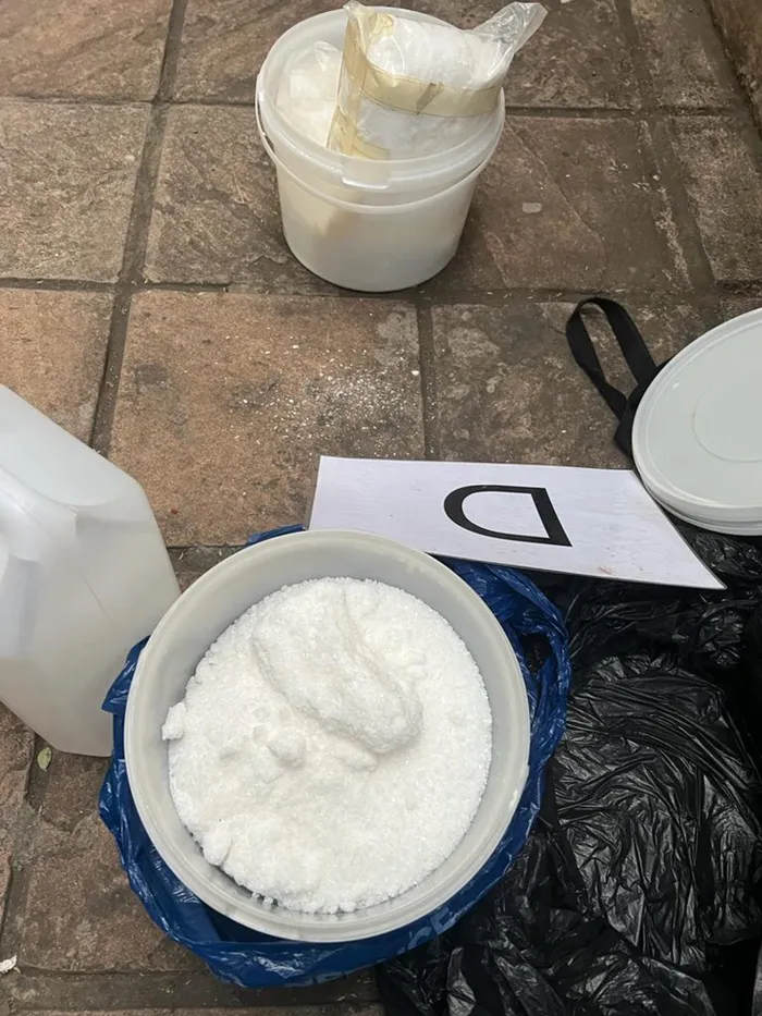 Some of the drug found at a drug lab operating from a lodge in Midrand . A manager was arrested for manufacturing and dealing in drugs, after drugs worth R300 000 was found at a lodge in Midrand.