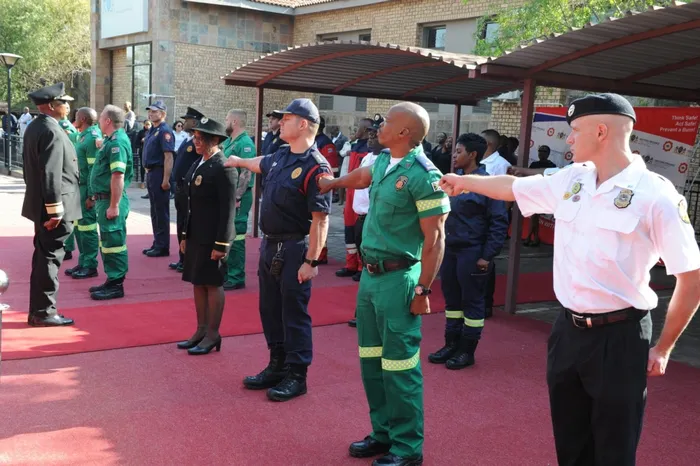 MEC Sipho Hlomuka handed out medals and certificates during a ceremony at the Gauteng Provincial Disaster Management Centre, in Midrand, earlier this year to honour search and rescue teams that took part in relief operations during the KZN floods. Picture: KZN Cogta