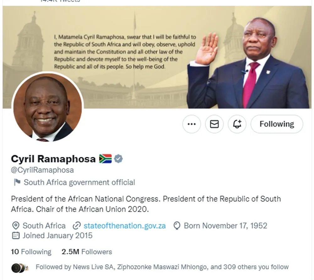 “The Presidency’s account at 2.3 million followers, a 13.26% jump from 2021, pretty much mirrors that of the president," Tshenkeng added.