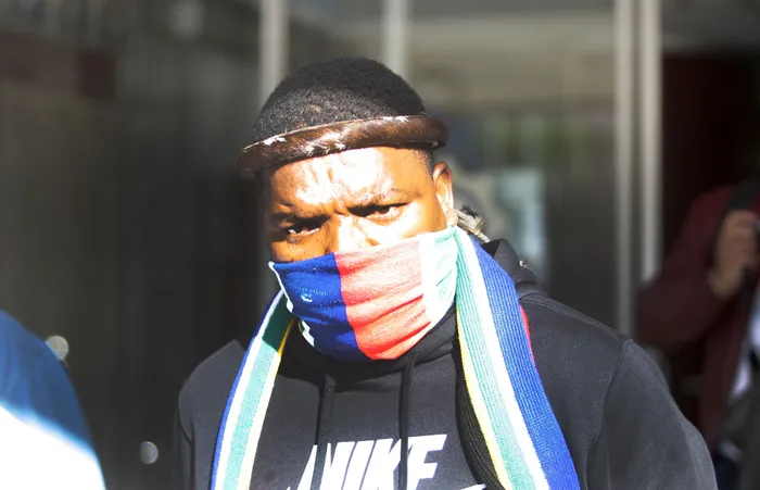 When Mchunu handed himself to the police, he was wearing a black Nike tracksuit, long-sleeved Nike T-shirt, South African flag scarf, South African flag face mask and his trademark Zulu headgear known as umqhele.