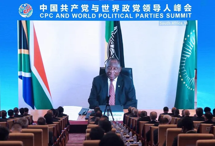 Cyril Ramaphosa, president of the African National Congress and South African president, addresses the Communist Party of China (CPC) and World Political Parties Summit on July 6, 2021. The CPC and World Political Parties Summit was held via video link on Tuesday. (Xinhua/Cai Yang) Cyril Ramaphosa, president of the African National Congress and South African president, addresses the Communist Party of China (CPC) and World Political Parties Summit on July 6, 2021. The CPC and World Political Parties Summit was held via video link on Tuesday. (Xinhua/Cai Yang)
