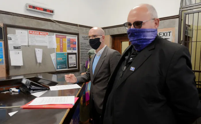 South Africa - Cape Town - 7 September 2021 - DA parliamentary spokesperson for Employment and Labour and DA MP Michael Bagraim arrive at the Cape Town Central Police Station. The DA lodged a formal complaint with the police against the ANC’s Top Six leadership over the ruling party’s alleged failure to pay UIF contributions at Cape Town Central Police Station. Photographer: Armand Hough/African News Agency(ANA)