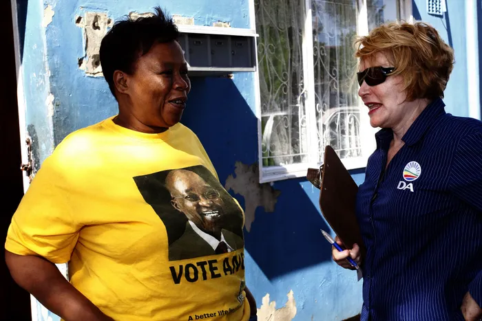 Farouk Araie writes that many of our past and current leaders are congenital liars. Years of lying has made our politics morally bankrupt, resulting in a dearth of infrastructure and a massive decline in the quality of services. Pictured: Democratic Alliance leader Helen Zille offering an ANC supporter a blue T-shirt, which she declined saying that all politicians were corrupt. Picture: Giordano Stolley/SAPA